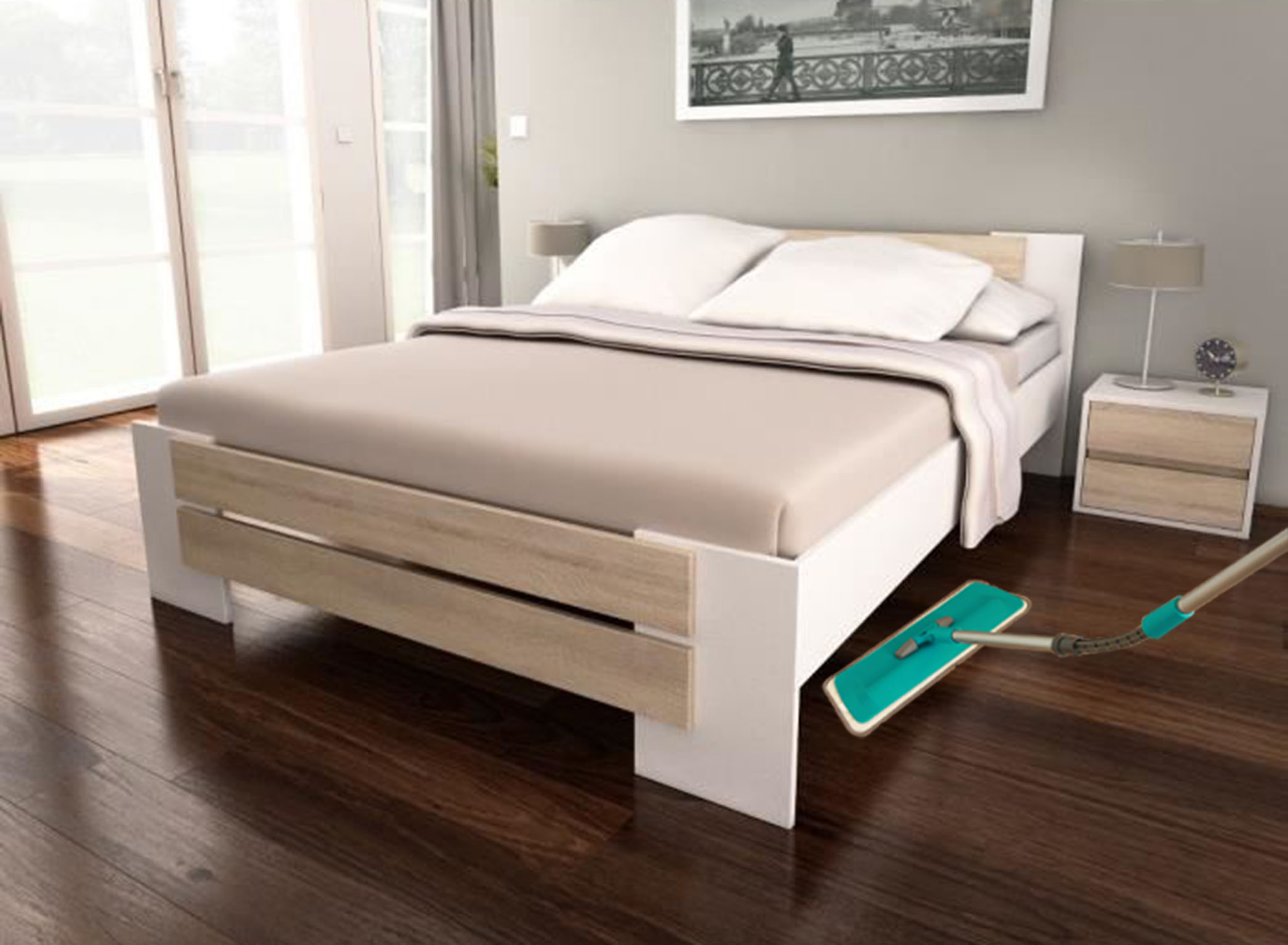 BALAI PLAT avec FRANGE MICROFIBRE Velcro + MANCHE Flexible jusqu`à 1,50M Céleste - ROZENBAL